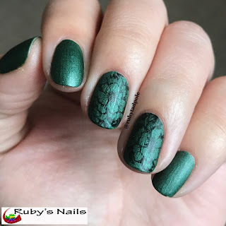 I started with a base with ManGlaze Nawsome Sauce. Then I stamped on a floral design from Born Pretty Store plate BPL-024. I didn't add top coat to keep the design matte.